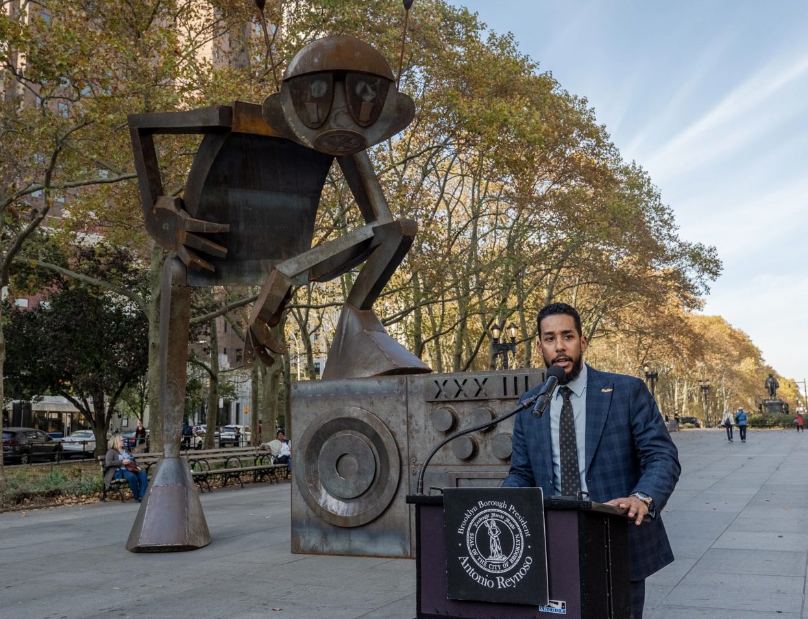 After an intense eight months of work on the Rappin’ Max project, the sculpture was completed and unveiled at the Collab studio. It was first presented to the public on July 25, 2024, in Brooklyn, and on August 10, it received its second antenna during a celebratory event near the yet-to-be-opened Museum of Hip-Hop in the Bronx.