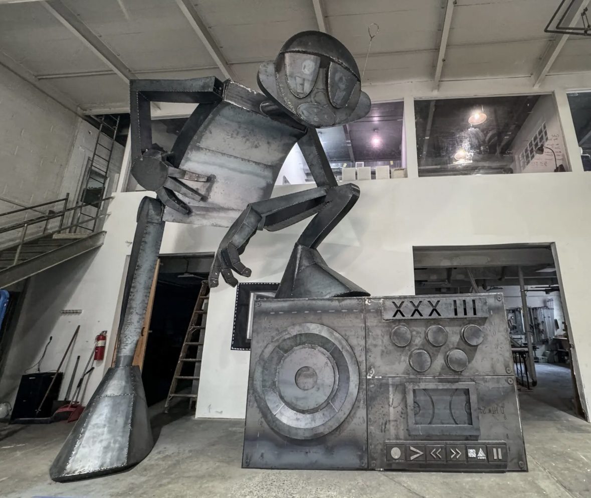 The sculpture was made from 7,000 pounds of steel and embodies the B-Boy style. The largest element was the 10-foot boombox, which weighs 3,000 pounds.