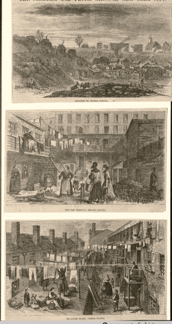 Місто на той час було брудним. Сміття збирали свині та собаки, які його просто з’їдали. А люди жили поруч з тваринами на вулицях з бруду та гною. До епідемії ніхто не був готовим, навіть лікарі. Файв Пойнтс – район, де епідемія спалахнула найсильніше, був нетрями, які знаходились на перехресті п’яти вулиць на північ від мерії. Тоді там жили разом афроамериканці та іммігранти ірландці-католики. Сьогодні це китайський квартал та площа Фолі. Чарльз Діккенс писав, що тут все “огидне, поникле та зітліле”. А Мартін Скорсезе в фільмі «Банди Нью-Йорка» показав, як виглядав цей район в час епідемії.