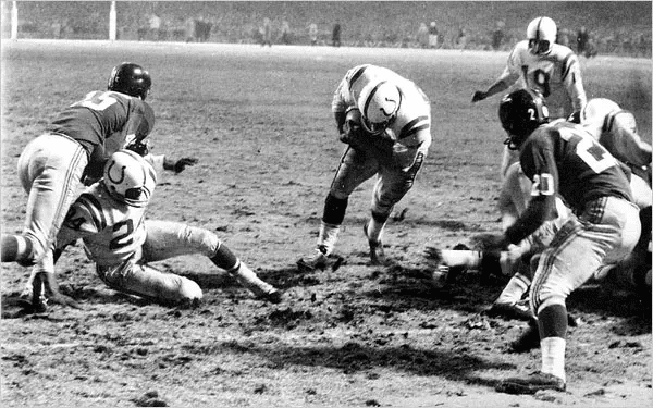 На початку сезону 1958 р., в якому «Балтімор Кольтс» були дуже жваві і виграли перші 6 ігор, їх очікувала поразка від «Нью-Йорку» з рахунком 24-21. Але пояснити причини їх поразки можна легко, адже їх ключовий захисник Джонні Юнітас був травмований і не зміг взяти участь в грі. Вже через три тижні він яскраво повернувся і взяв участь в розгромі «Сан-Франциско». Це дозволило команді перемогти з рахунком 35-27 і стати чемпіоном Західної ліги. Після цього команда отримала можливість відпочити перед важливою грою сезону.